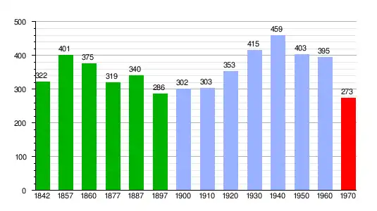 Gráfica de evolución demográfica de Villar del Águila entre 1842 y 1970 |