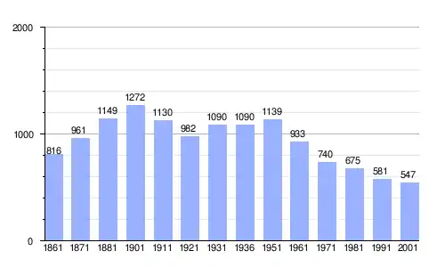 Gráfica de evolución demográfica de Villarboit entre 1861 y 2001 |