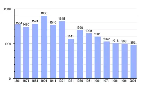 Gráfica de evolución demográfica de Villareggia entre 1861 y 2001 |