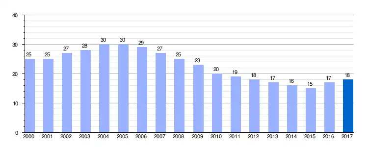 Gráfica de evolución demográfica de Villarejo-Sobrehuerta entre 2000 y 2017 |