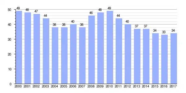 Gráfica de evolución demográfica de Villarino del Sil[2] entre 2000 y 2017 |