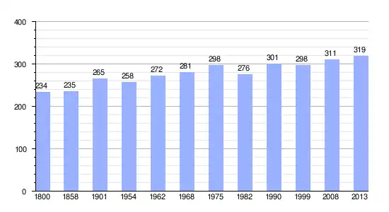 Los datos demográficos contemplados en este gráfico de la comuna de Villarlurin[4] se han cogido de 1800 a 1999 de la página francesa EHESS/Cassini, y los demás datos de la página del INSEE.[5]