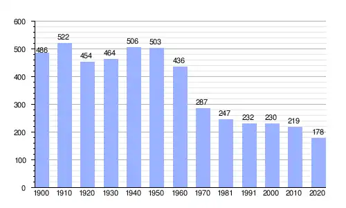 Gráfica de evolución demográfica de Villarmayor entre 1900 y 2020 |