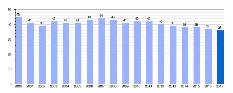 Gráfica de evolución demográfica de Villarmentero entre 2000 y 2017 |