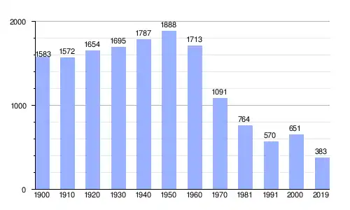 Gráfica de evolución demográfica de Villarrín de Campos entre 1900 y 2019 |