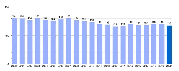 Gráfica de evolución demográfica de Calzadilla de la Cueza entre 2000 y 2020 |