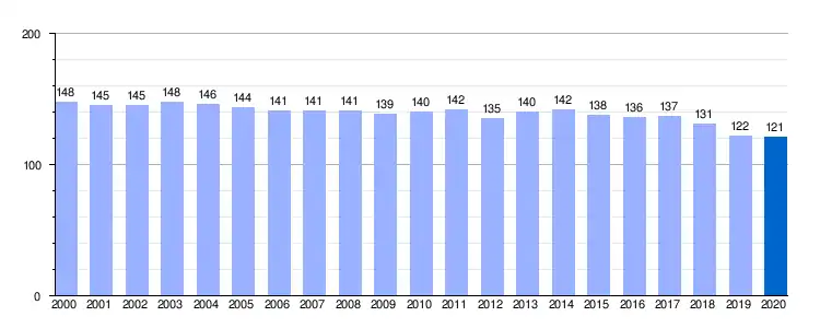 Gráfica de evolución demográfica de Villarrodrigo de la Vega entre 2000 y 2020 |