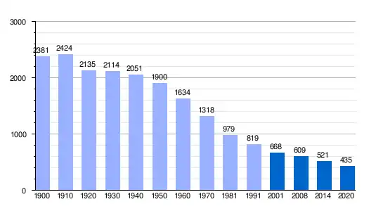 Gráfica de evolución demográfica de Villarroya de la Sierra entre 1900 y 2020 |