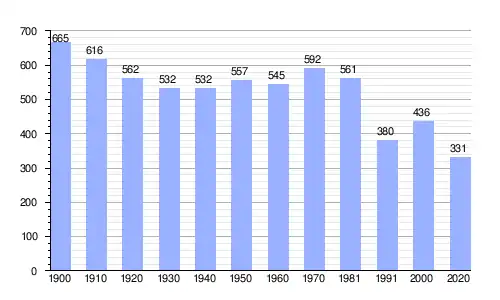 Gráfica de evolución demográfica de Villaseco de los Reyes entre 1900 y 2020 |