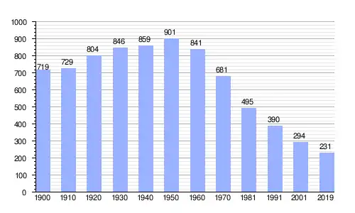 Gráfica de evolución demográfica de Villaseco del Pan entre 1900 y 2019 |