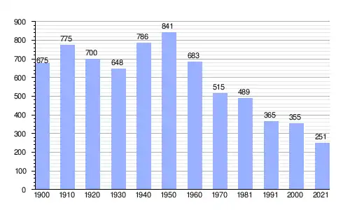 Gráfica de evolución demográfica de Villasrubias entre 1900 y 2021