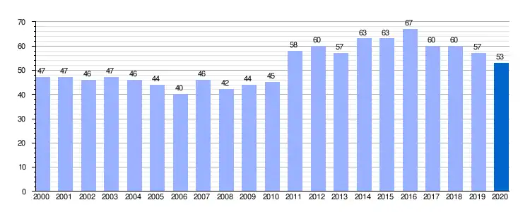 Gráfica de evolución demográfica de Villatoquite entre 2000 y 2020 |