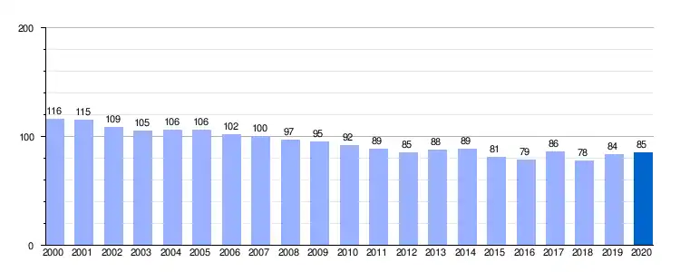 642 | 727 | 766 | 713 | 736 | 851 | 817 | 590 | 383 | 257 |