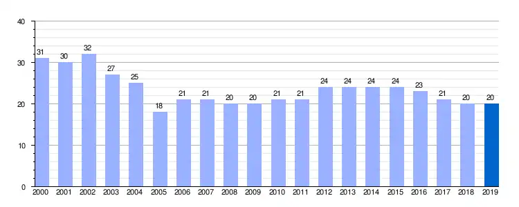 Gráfica de evolución demográfica de Villavés entre 2000 y 2019 |