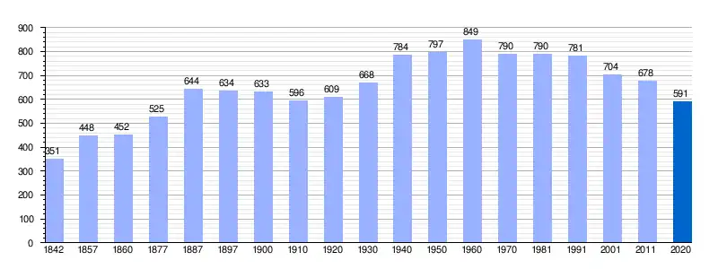 Población de derecho (1842-1991, excepto 1857 y 1860 que es población de hecho) o población residente (2001-2011) según los Censos de Población desde 1842. Población según el padrón municipal de 2020 del INE. |