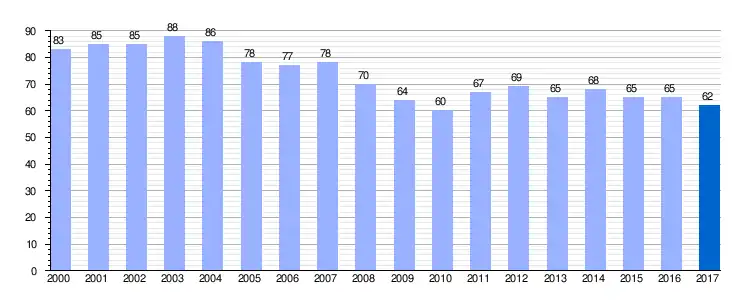 Gráfica de evolución demográfica de Villacintor entre 2000 y 2017 |