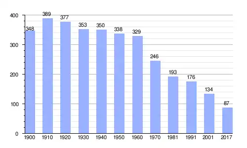 Gráfica de evolución demográfica de Villaveza de Valverde entre 1900 y 2017 |