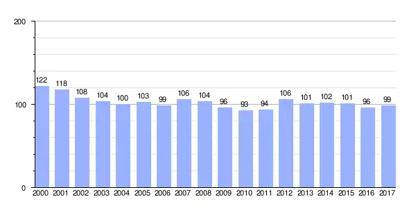 Gráfica de evolución demográfica de Villaviciosa de la Ribera[2] entre 2000 y 2017 |
