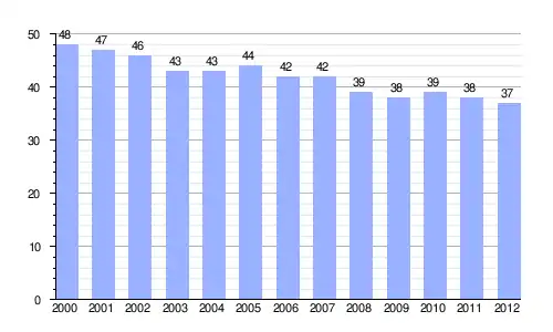 Gráfica de evolución demográfica de Villavieja de Muñó entre 2000 y 2012 |