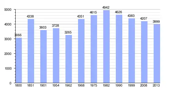 Gráfica de evolución demográfica de Villedieu-les-Poêles-Rouffigny entre 1800 y 2013 |