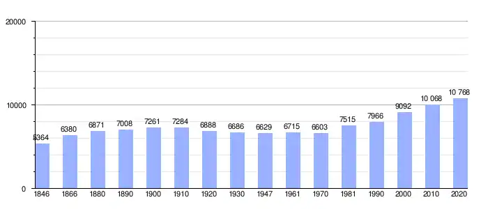 Todos los datos históricos relativos al actual municipio, el siguiente gráfico refleja su evolución demográfica, incluyendo municipios después de efectuada la fusión el 1 de enero de 1977.