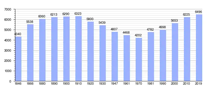 Todos los datos históricos relativos al actual municipio, el siguiente gráfico refleja su evolución demográfica, incluyendo municipios después de efectuada la fusión el 1 de enero de 1977.
