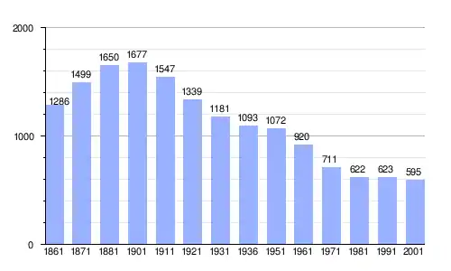 Gráfica de evolución demográfica de Villetta Barrea entre 1861 y 2001 |