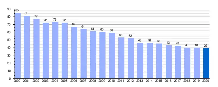 Gráfica de evolución demográfica de Villota del Duque entre 2000 y 2020 |