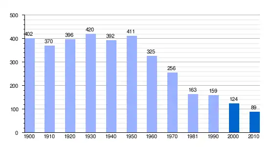 Gráfica de evolución demográfica de Villovieco entre 1900 y 2010 |