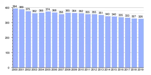 Gráfica de evolución demográfica de Villozás entre 2000 y 2019 |