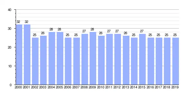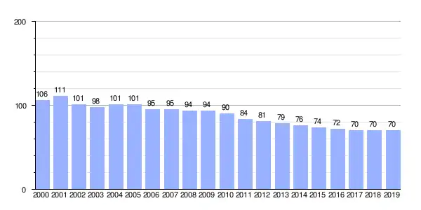 Gráfica de evolución demográfica de Vilouriz (parroquia) entre 2000 y 2019 |