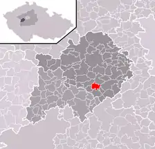 Se encuentra ubicada al oeste de la región y de Praga, en la cuenca hidrográfica del río Berounka —un afluente izquierdo del río Moldava—, y cerca de la frontera con la región de Pilsen.[1]