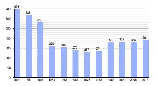 Gráfica de evolución demográfica de Vincelles entre 1800 y 2014 |