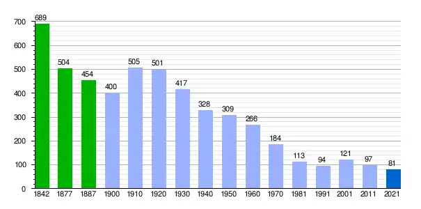 Población de derecho (1857-1897) según los censos de población del INE del siglo XIX. Población de derecho (1900-1991) o población residente (2001) según los censos de población del INE. Población según el padrón municipal de 2018 del INE. |