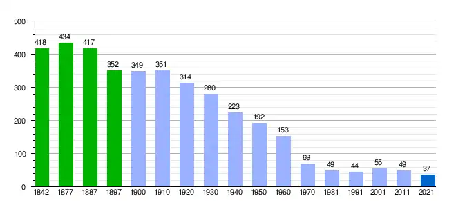 Gráfica de evolución demográfica de Viniegra de Arriba entre 1842 y 2021 |