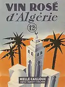 Cuando la plaga de filoxera destruyó los viñedos franceses a mediados del siglo XIX, las exportaciones de vino argelino a Francia llenaron el vacío. La afluencia de vinicultores de la región vinícola alemana de Baden trajo consigo técnicas más modernas de vinificación y ayudó a aumentar la calidad general del vino de Argelia. Incluso después de que los franceses reanudaron los niveles normales de producción de vino, el vino argelino todavía se usaba ampliamente en regiones como el Languedoc como un componente de mezcla que daba color y fuerza a los vinos. [2] [1] El punto álgido de la industria vinícola argelina llegó a fines de la década de 1930, cuando más de 4,000 kilómetros cuadrados (1,500 millas cuadradas) producían más 2,100 megalitros (550,000,000 galones estadounidenses) de vino. [2] En la década de 1950, junto con Túnez y Marruecos, el vino argelino representaba casi dos tercios del vino que se comercializaba internacionalmente.[3] En gran medida, el vino tinto argelino se usó para mezclarlo con el vino tinto del sur de Francia, ya que el vino argelino era de color más profundo y más alto en alcohol que los vinos franceses producidos a partir de uvas Aramon.[2]La variedad de uva dominante en Argelia en este momento era Carignan, que solo superó a Aramon en el sur de Francia en la década de 1960. [2][3]