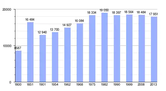 Gráfica de evolución demográfica de Vire-Normandie entre 1800 y 2013 |