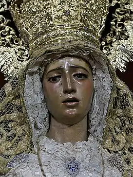 El 21 de noviembre de 1954 fue coronada canónicamente en la catedral de Sevilla siendo la primera Dolorosa en recibir esta distinción en la archidócesis.[1] Representa el momento en el que la Virgen es acompañada por san Juan Evangelista en la calle de la Amargura, camino del Calvario.
