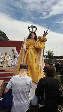 En los dos últimos días, en las afueras del santuario se congregan los diversos grupos de baile, quienes participan en una colorida procesión por las calles aledañas al Santuario, esta procesión dura entre 4 y 5 horas. Esta parte de la celebración es la más esperada por los fieles, ya que muestran la alegría por la protección de la Virgen.[cita requerida]