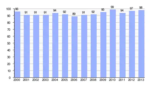 Gráfica de evolución demográfica de Viscarret-Guerendiáin entre 2000 y 2013 |