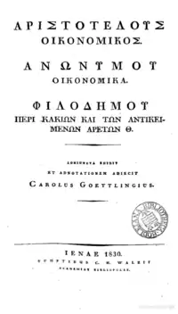 - The Politics and Economics of Aristotle, Edward English Walford y John Gillies, trans., (London: G. Bell & Sons, 1908)