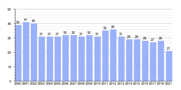 Gráfica de evolución demográfica de Viso entre 2000 y 2021 |