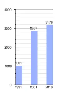 La tabla siguiente resume la población de los distintos barrios según los censos de 1991 y 2001 y la proporción de cada una con respecto a la total del municipio.