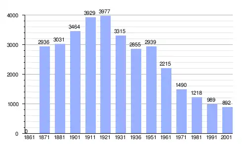 Gráfica de evolución demográfica de Vito d'Asio entre 1861 y 2001 |