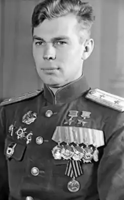 Nació en el seno de una familia campesina de Kiyevskoye, en el entonces óblast de Kubán-Mar Negro de la RSFS de Rusia el 27 de enero de 1923. Acabó la escuela secundaria y el sus primeros estudios de aviación en 1940. Entró en el Ejército Soviético en mayo de 1941, acabando su formación en las Escuela Militar de Pilotos Aéreos de Krasnodar en 1942. Desde 1943 fue miembro del Partido Comunista de la Unión Soviética. En febrero de ese año fue enviado al frente, donde asaltaba las baterías enemigas que hacían fuego sobre Leningrado, y las unidades enemigas situadas sobre el istmo Carelio, los países bálticos y Prusia Oriental. Le es concedido el título de Héroe de la Unión Soviética como Jefe de Escuadrilla del 15º Regimiento Aéreo de Asalto de la Guardia (227º División Aérea de Asalto, 1.er Ejército del Aire, 3.er Frente Bielorruso) el 19 de abril de 1945 por 230 misiones de combate exitosas, por el valor manifestado en la ejecución de las misiones de combate. El 19 de junio de 1945 se le hizo entrega de su segunda Estrella de Oro como Jefe del 15º Regimiento Aéreo de Asalto de la Guardia por 292 misiones de combate asaltando a los refuerzos enemigos, los aeródromos y la destrucción de las fuerzas del adversario, que completarían su participación en la guerra. En ellas destruyó una decena de aviones derribados o destruidos en los aeródromos, 33 tanques, 118 vehículos, 53 coches ferroviarios, 85 carros, 15 transportes blindados, 10 almacenes de petrechos, 27 piezas de artillería, 54 cañones antiaéreos, 12 lanzaminas y a centenares de soldados y oficiales del enemigo nazi.