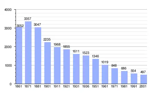 Gráfica de evolución demográfica de Vobbia entre 1861 y 2001 |