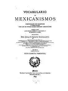 Vocabulario de mexicanismos es un diccionario inconcluso del polígrafo mexicano Joaquín García Icazbalceta, publicado póstumamente en 1899 por su hijo, Luis García Pimentel.[1]