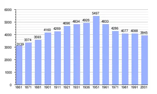 Gráfica de evolución demográfica de Voghiera entre 1861 y 2001 |