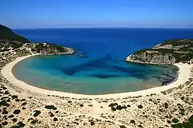 Se puede llegar al estacionamiento de la playa por senderos de arena, ya sea desde el área de estacionamiento de la laguna de Yálova (también utilizada como parador por los observadores de aves) o siguiendo la ruta Norte desde Petrochori. La playa es considerada amigable para naturistas y turistas homosexuales.[4]