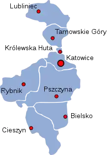 ![]() Ubicación de Voivodato de Silesia | |||||||||||||||||||||||||||||||||